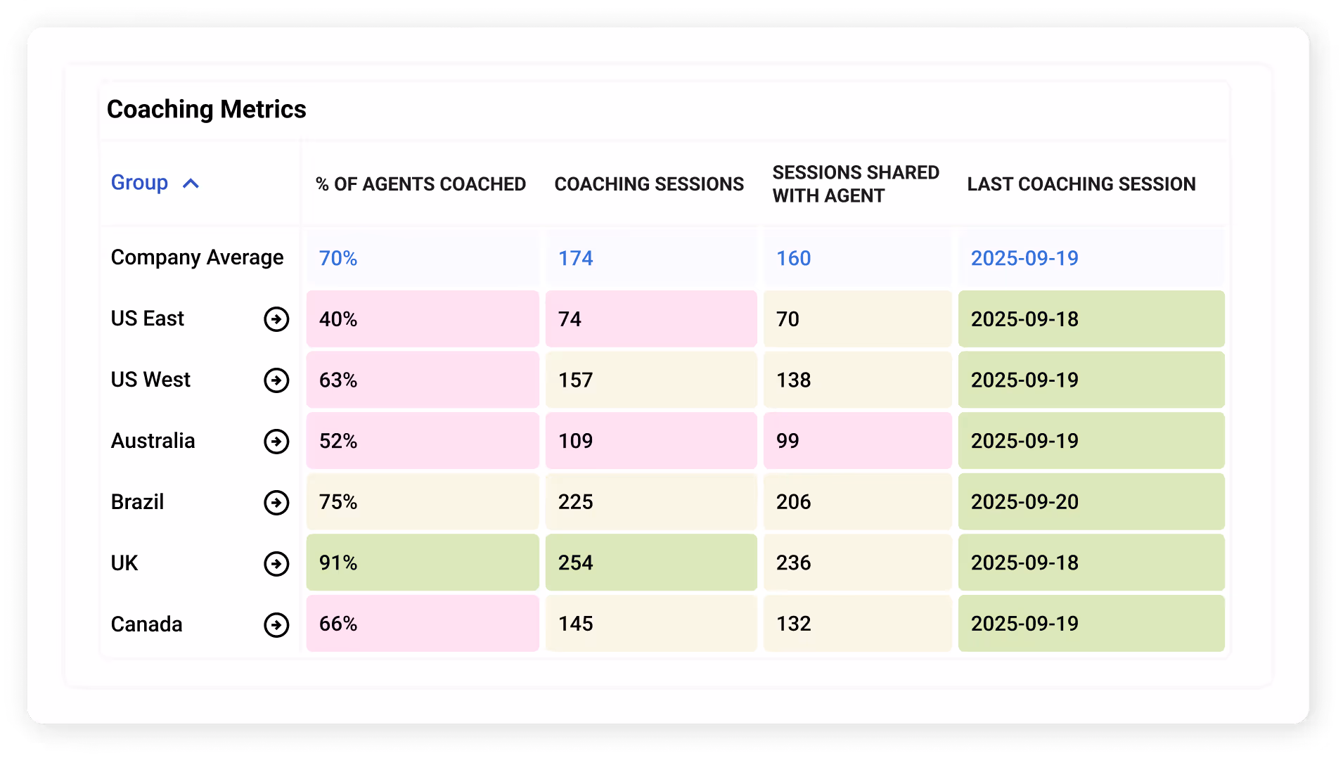 Track who’s coaching, how often, and on what topics. MaestroQA gives leaders visibility into coaching consistency across managers and connects sessions to outcomes that matter for every team—from revenue growth to risk reduction. Coaching becomes measurable, repeatable, and scalable across the business.