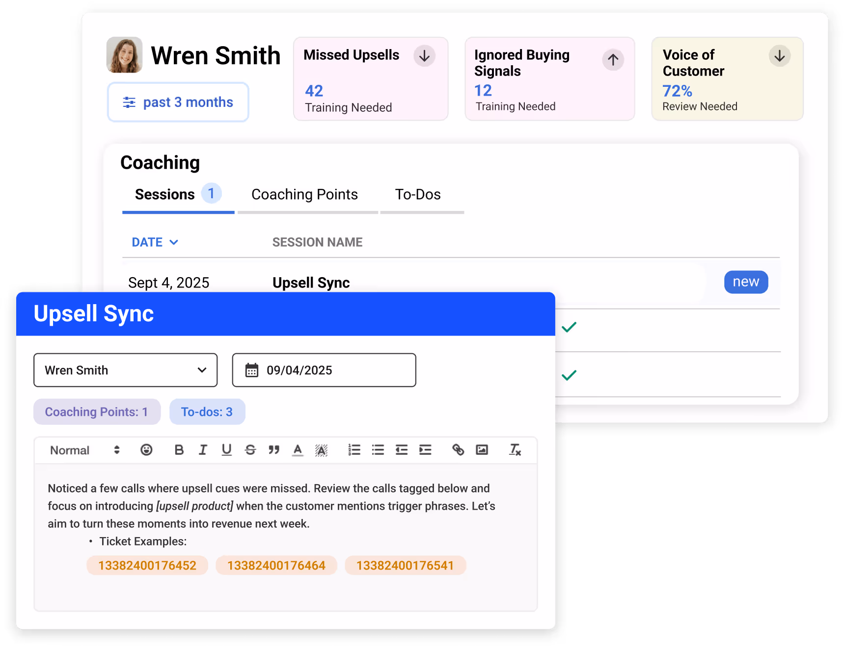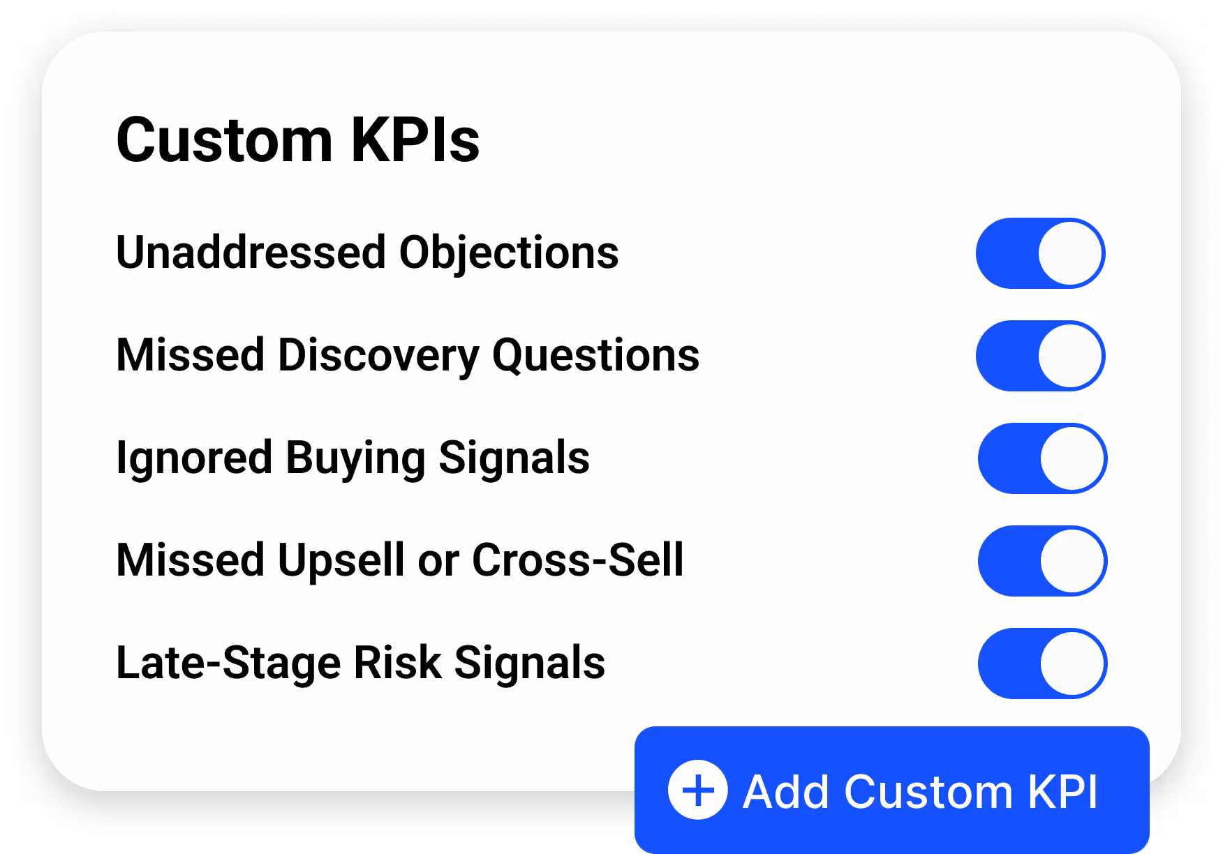 Pipeline metrics show what’s closing — but not the opportunities that slip away. Random call reviews, CRM notes, and rep self-reporting leave sales leaders blind to critical buying signals, unaddressed objections, and cross-sell moments that could have driven revenue. The cost is lost deals, wasted pipeline, and longer sales cycles. Without a way to see and act on these moments, revenue leaks compound quarter after quarter.